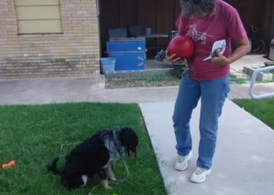 Grammy’s House Lightening’s Run Kennels welcomed its first guest last week. Pictured here is Linda Moreno, owner of Dandy Time Kennels and our guest Bentley an 8 month old Australian Shepherd Mix. We are so excited about this new pet provision venture. Lightening’s Run will prove to be an invaluable resource for those who have precious pets and need to flee a violent situation.